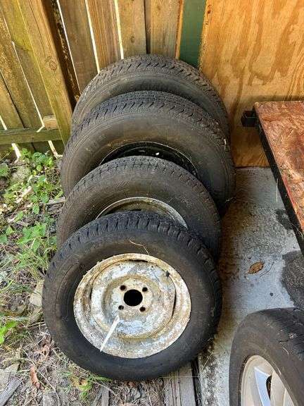 LOT 668 - (4)- Tires (78-13 st 4 Lug), (175/80 R13 5 Lug), (20 5/75 R15 5 Lug), (205/75 R15 5 Lug- Bent Rim)
